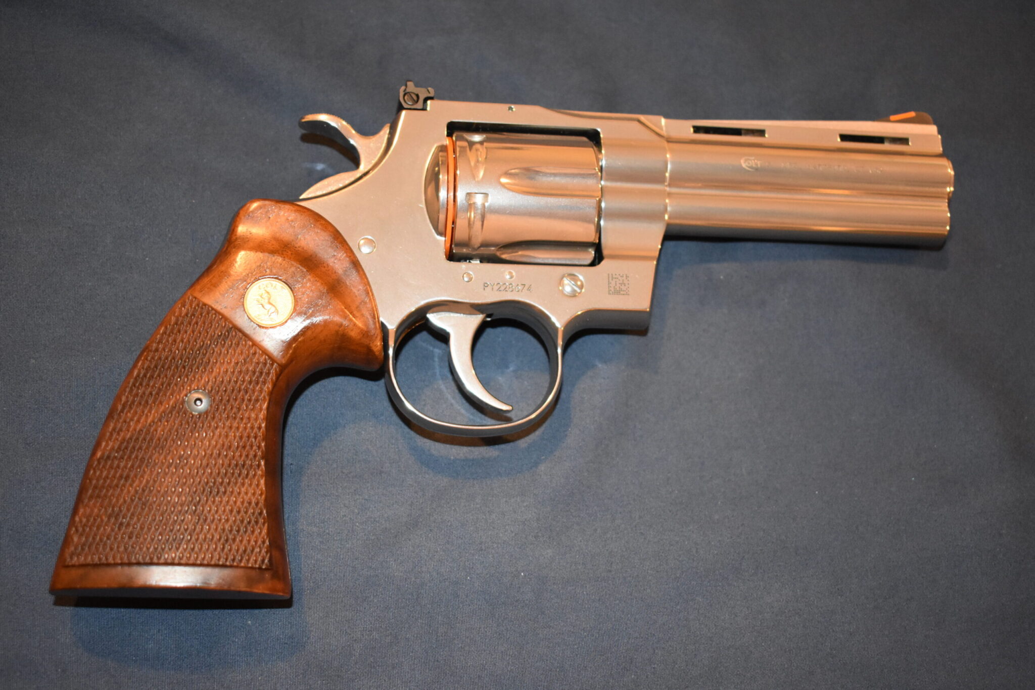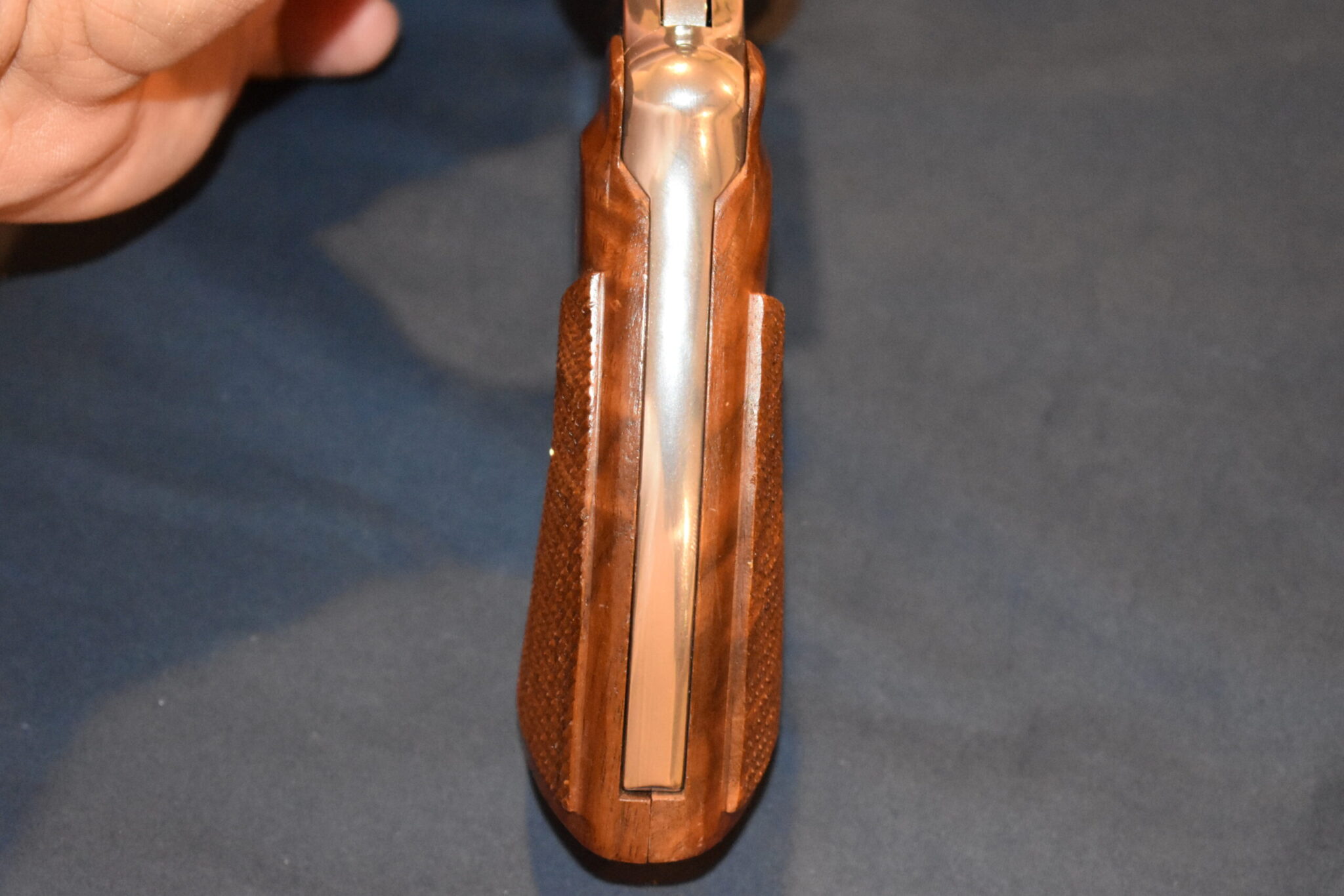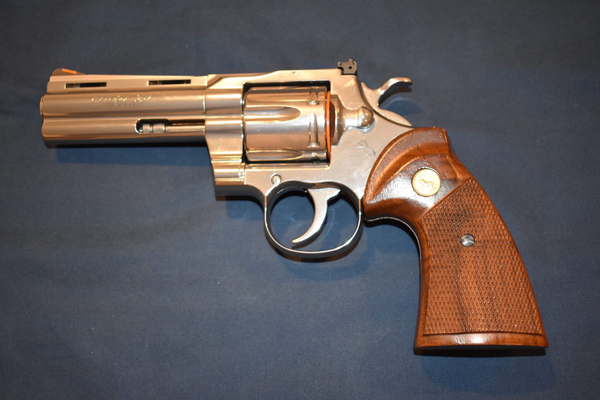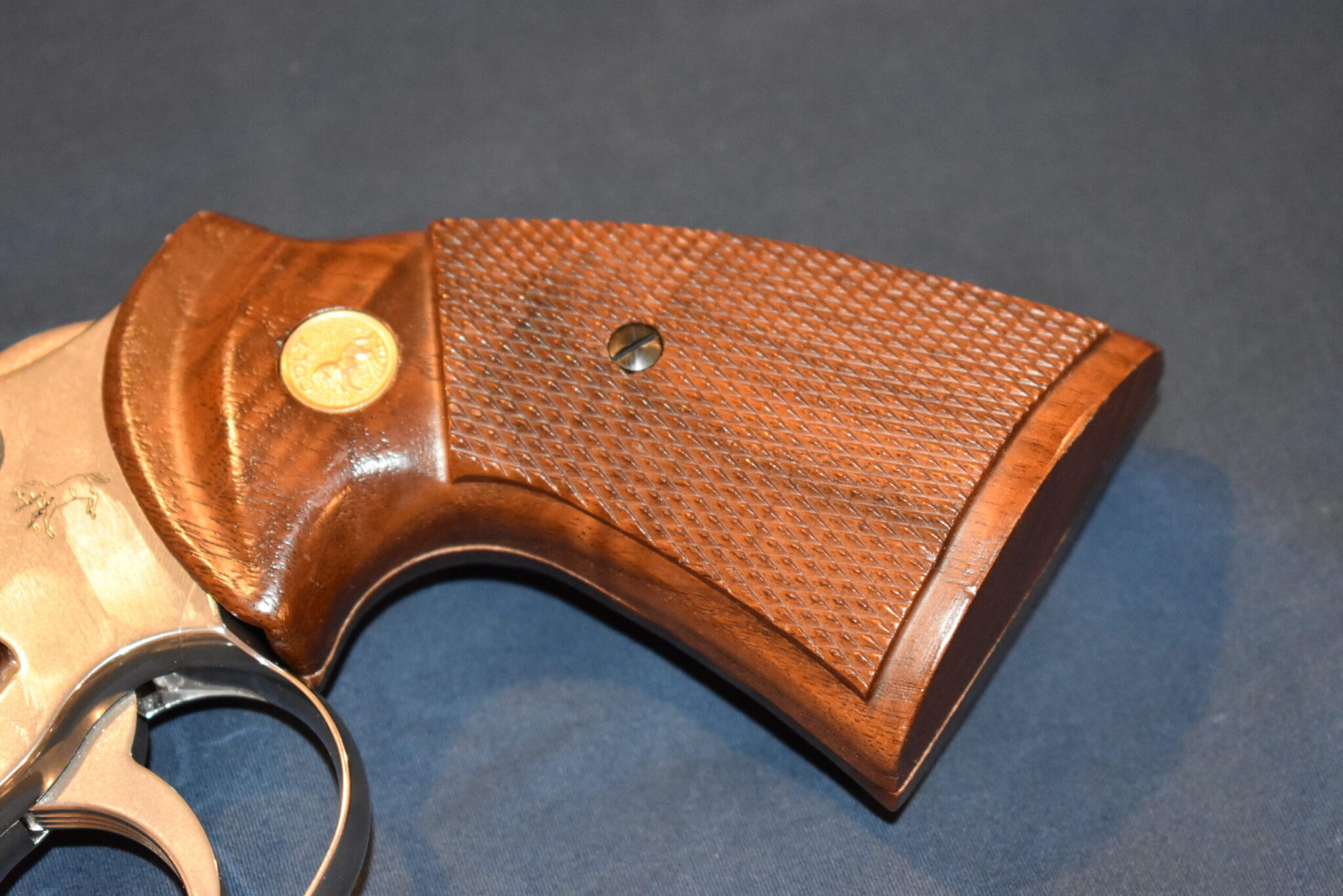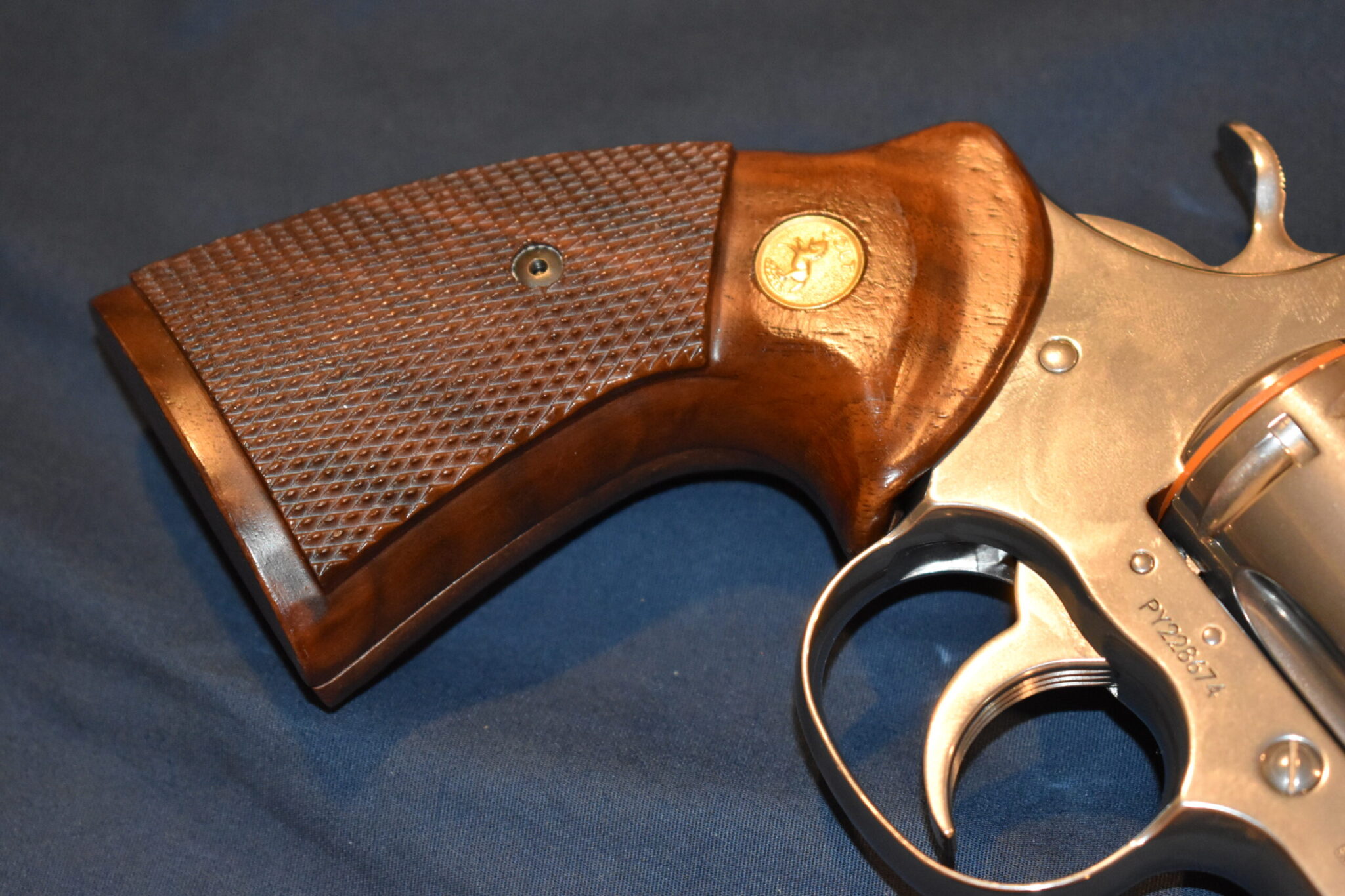 THIS IS A FACTORY SET OF TARGET GRIPS THAT WILL FIT THE COLT PYTHON REVOLVERS. THIS SET WILL NOT FIT THE COLT OFFICER’S MODEL MATCH DUE TO SCREW LOCATION. THIS SET IS IN EXCELLENT CONDITION WITH VERY LITTLE (IF ANY!!!) WEAR. THEY ARE SHOWN MOUNTED ON A 4″ STAINLESS PYTHON. TAKE A CLOSE LOOK AT THE PICTURES AS THEY DESCRIBE THE GRIPS BETTER THAN WORDS. SHIPPING WILL BE $8.50 PRIORITY MAIL