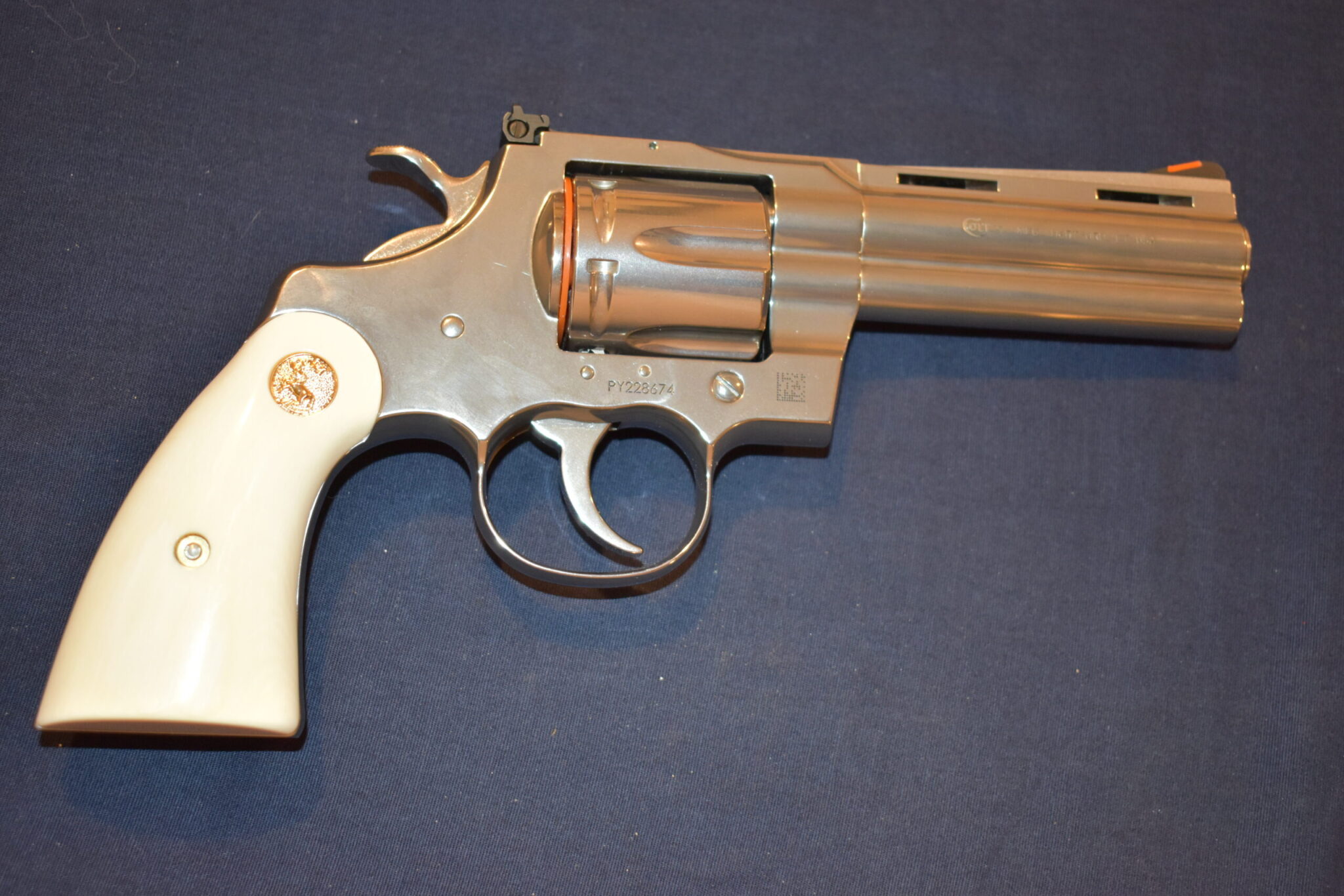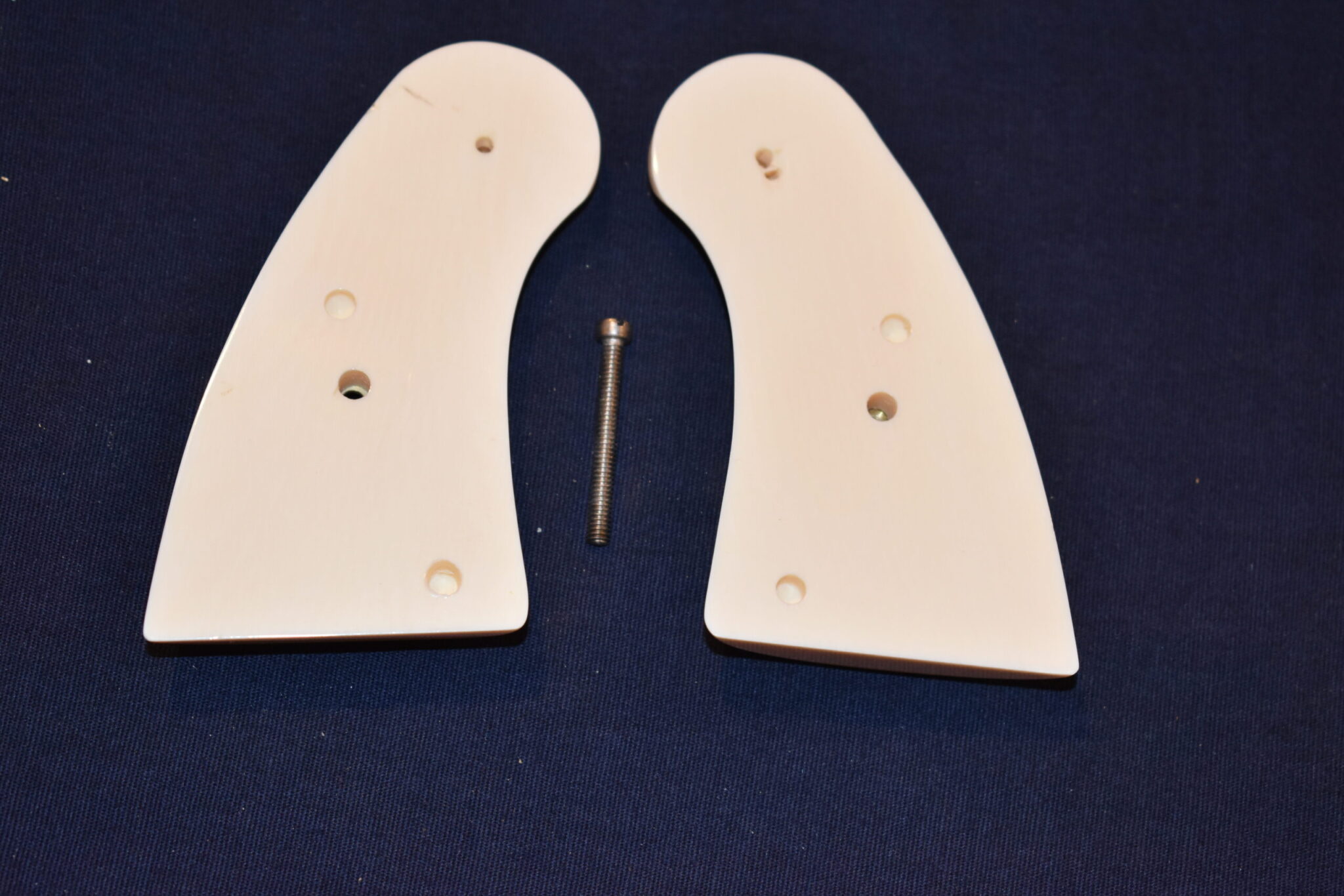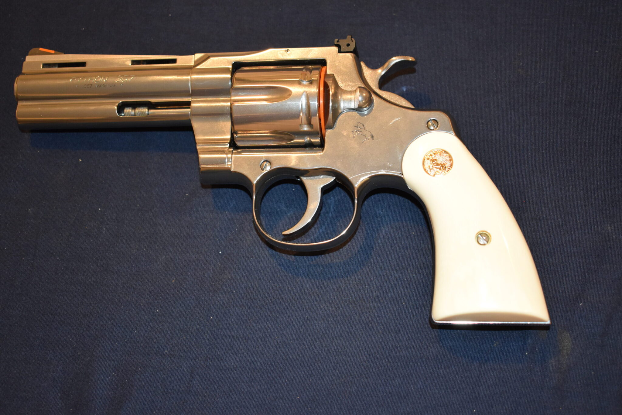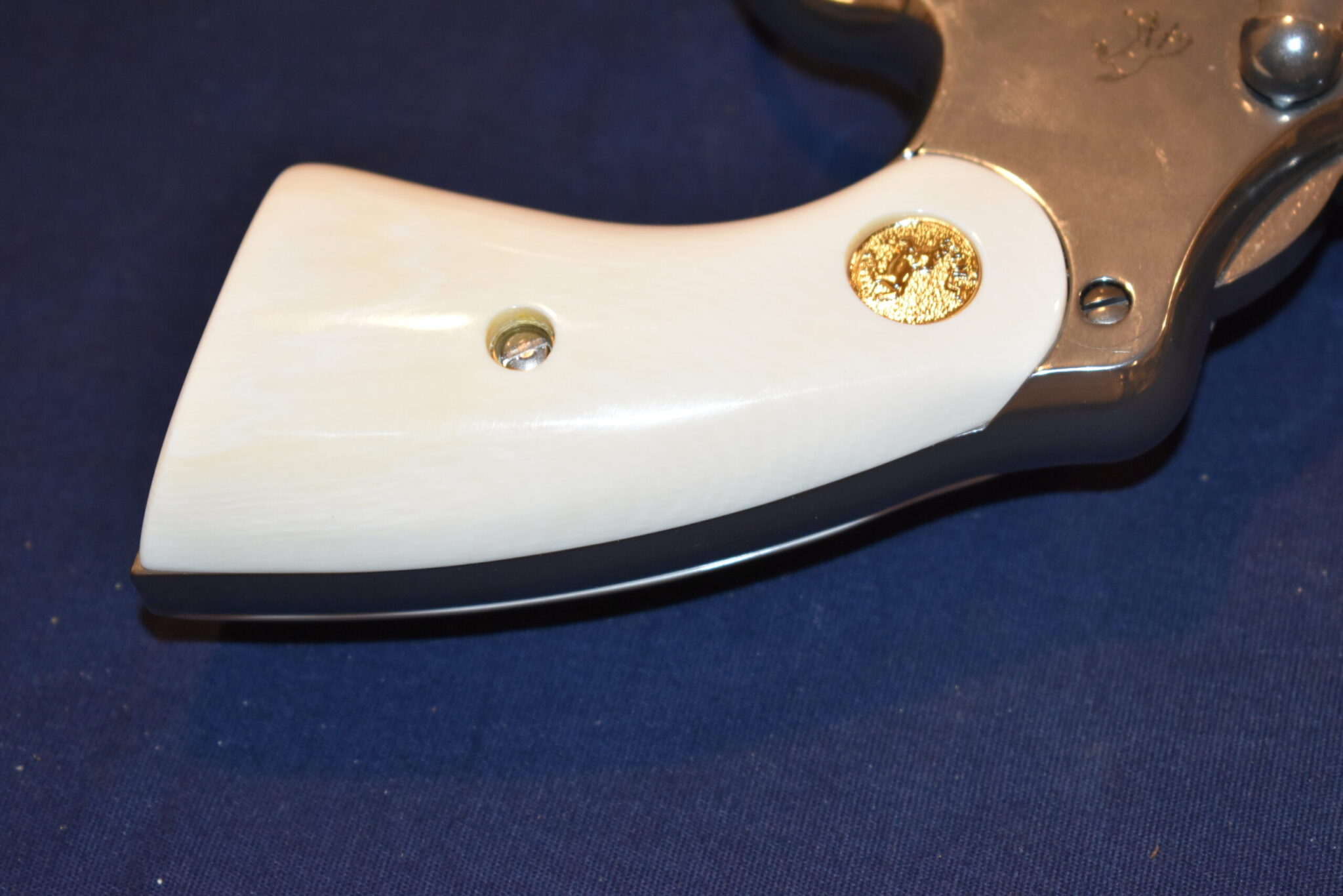 THIS IS A SET OF IVORY SERVICE GRIPS THAT WILL FIT THE COLT PYTHON, OFFICER’S MODEL MATCH & OTHER I FRAME REVOLVERS. THESE ARE GENUINE ELEPHANT IVORY MADE FROM LEGALLY IMPORTED IVORY BEFORE THE BAN. THIS SET IS IN EXCELLENT CONDITION AND HAS ONLY BEEN MOUNTED ON A FRAME FOR PICTURES. Â THIS IS SHOWN WITH COLT GOLD MEDALLIONS. Â THEY ARE SHOWN ON A NEWER 4″ STAINLESS PYTHON. TAKE A CLOSE LOOK AT THE PICTURES AS THEY DESCRIBE THE GRIPS BETTER THAN WORDS. SHIPPING WILL BE $8.50 PRIORITY MAIL