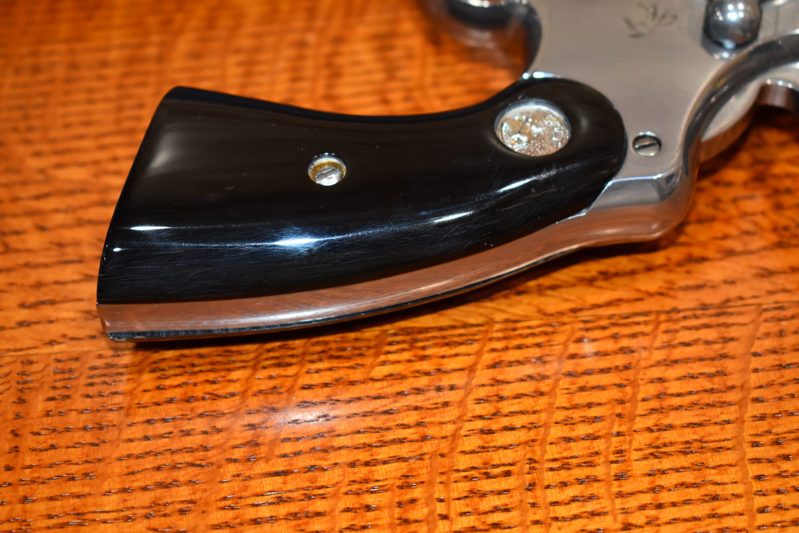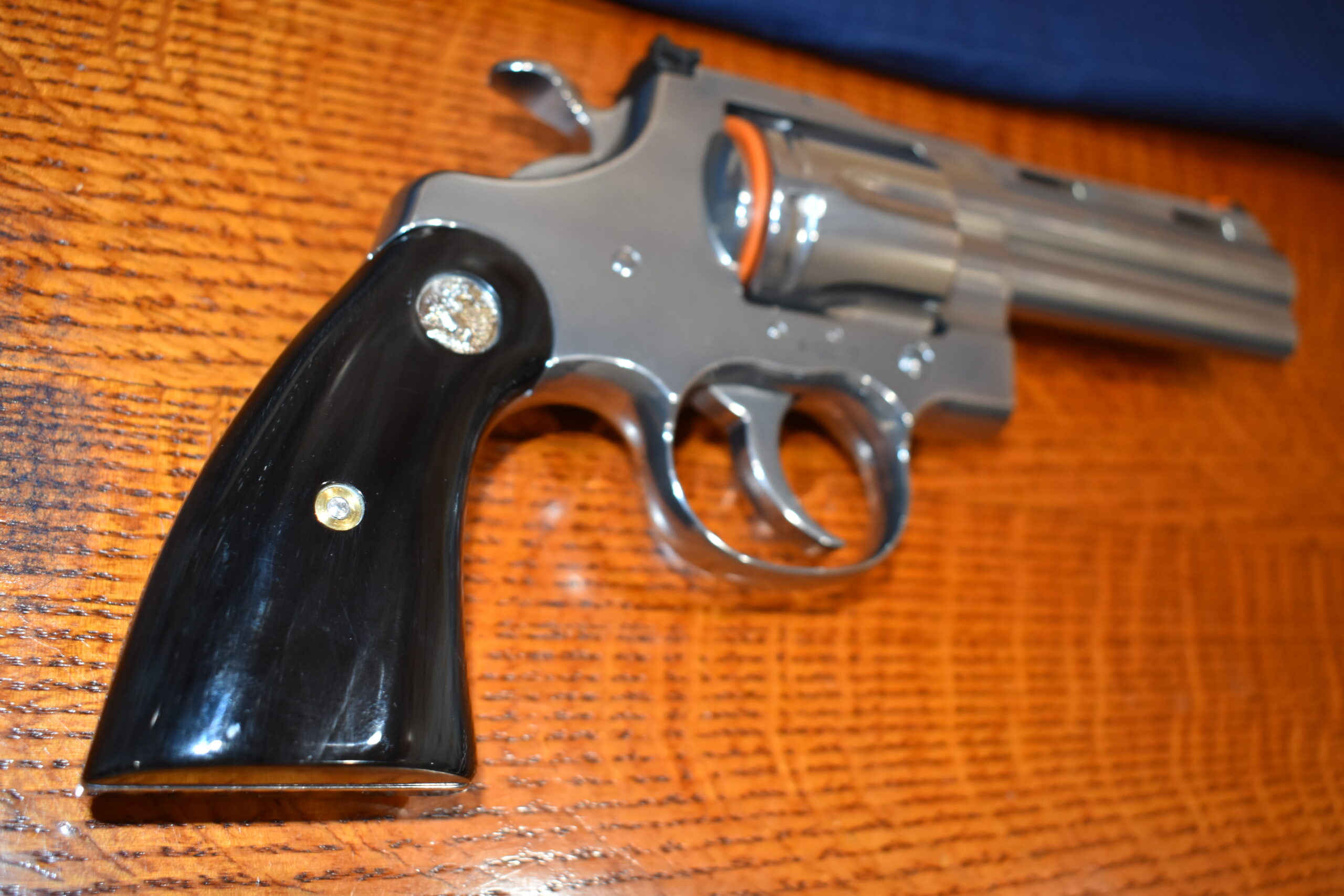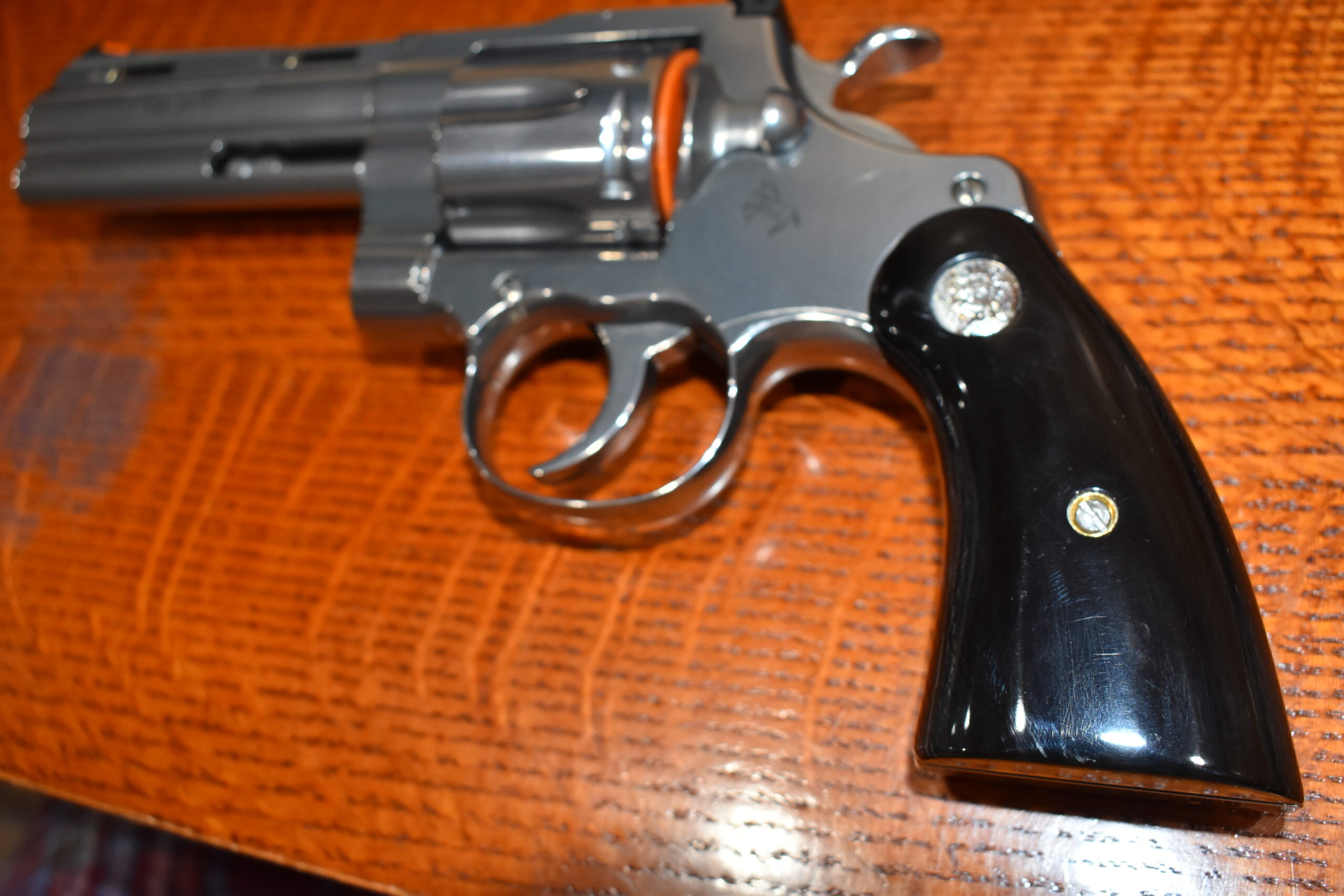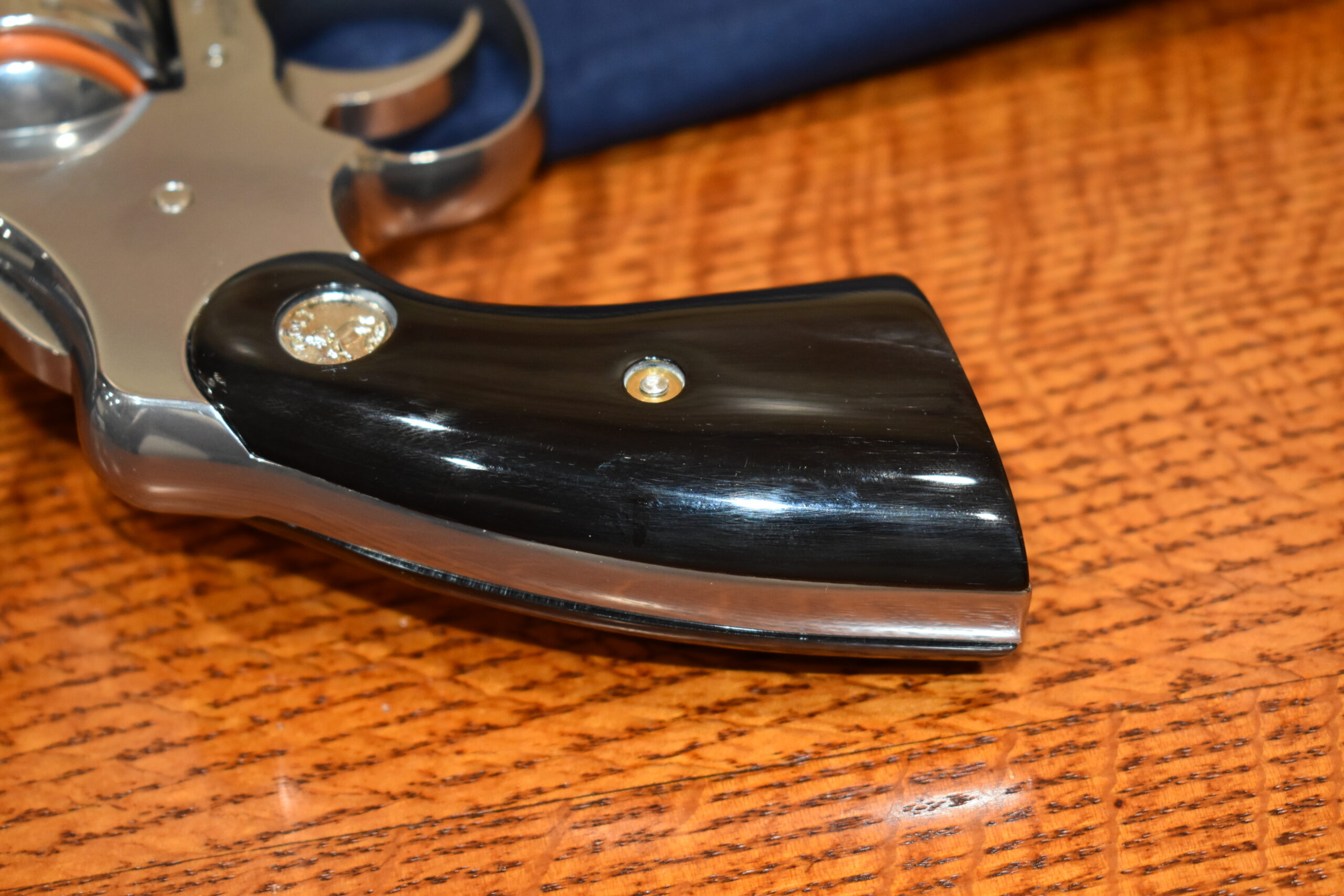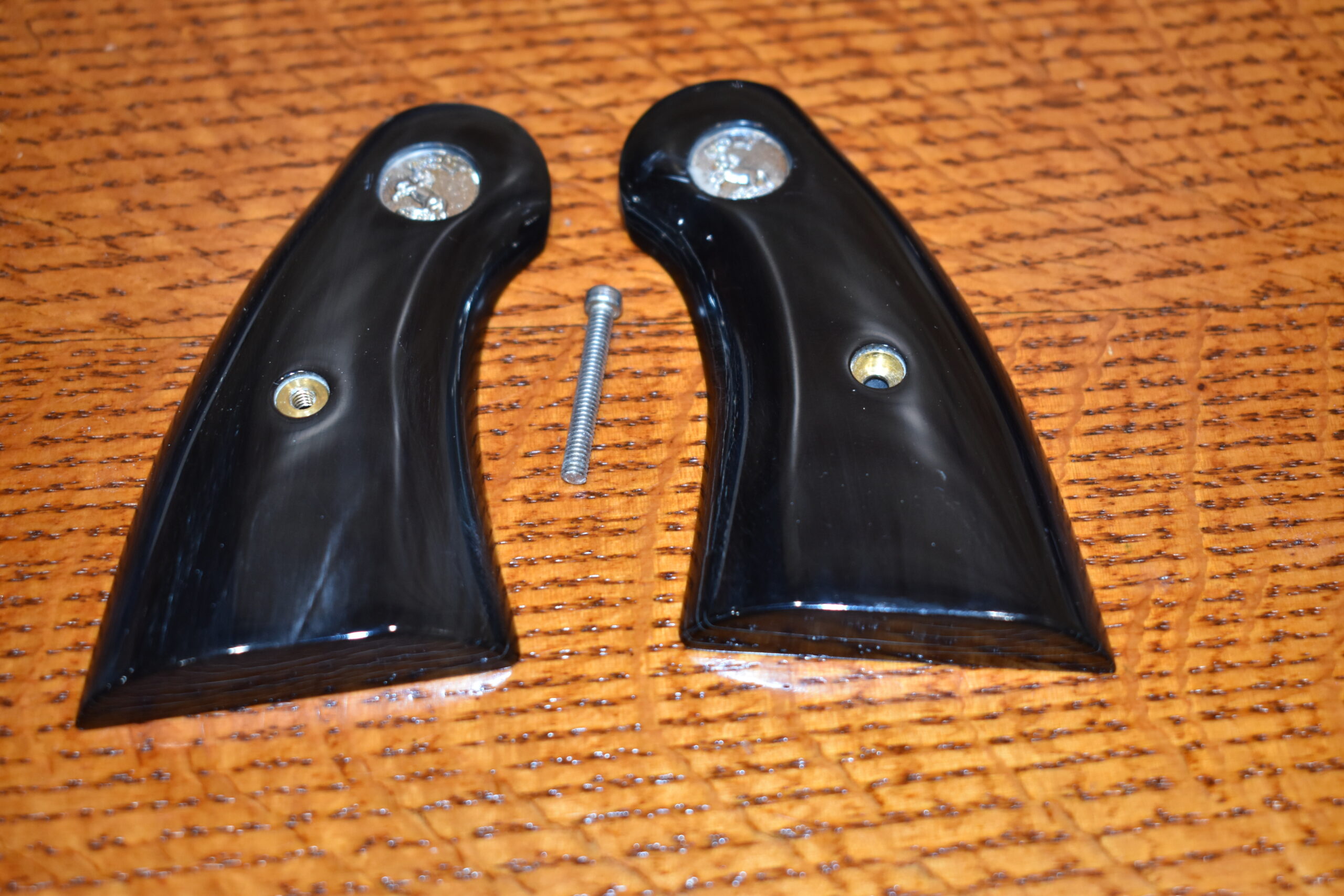 THIS IS A CUSTOM SET OF PREMIUM GRADE BUFFALO HORN GRIPS MADE TO FIT THE COLT PYTHON & OTHER I FRAME REVOLVERS SUCH AS THE OFFICER’S MODEL MATCH AND OFFICIAL POLICE. THESE ARE GENUINE BUFFALO HORN NOT IMITATION. THIS SET HAS SILVER MEDALLIONS INSTALLED & ARE A DEEP BLACK COLOR. THEY ARE SHOWN MOUNTED ON A 4″ STAINLESS PYTHON. AS WITH ALL NATURAL MATERIALS, THERE MAY BE SOME SLIGHT FITTING INVOLVED. TAKE A CLOSE LOOK AT THE PICTURES AS THEY DESCRIBE THE GRIPS BETTER THAN WORDS.Â