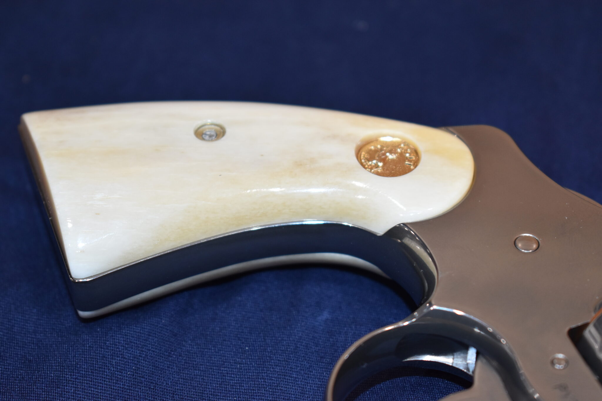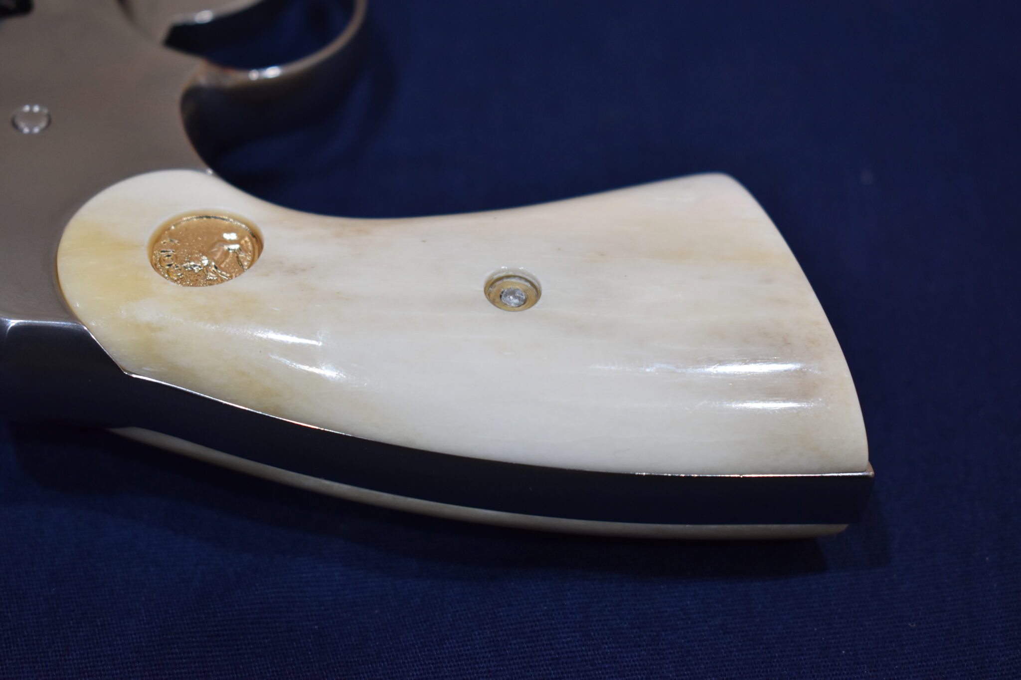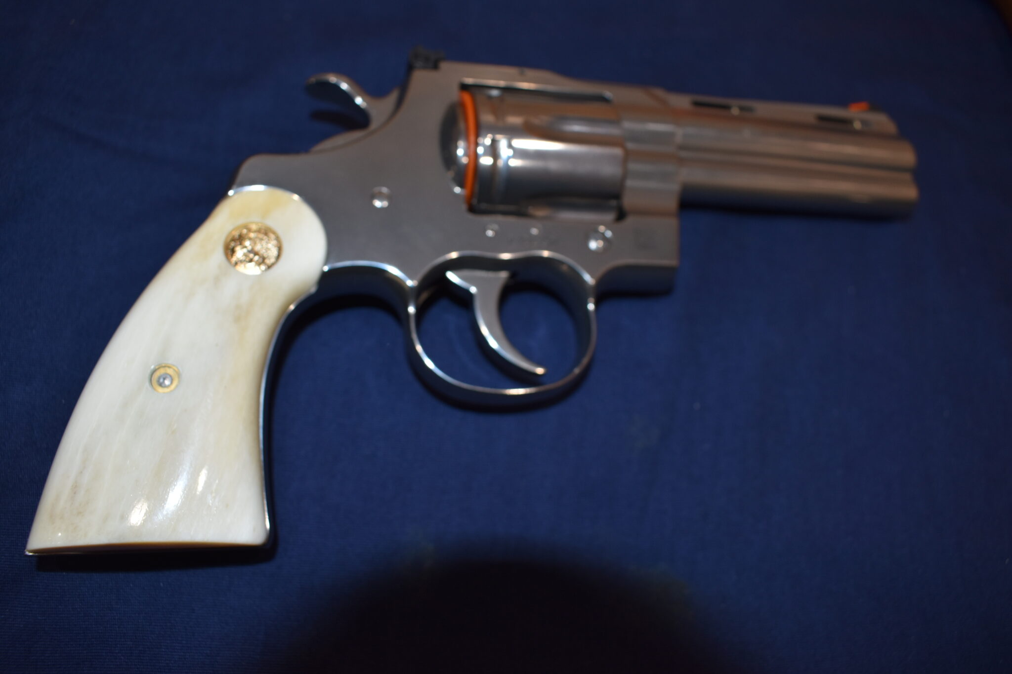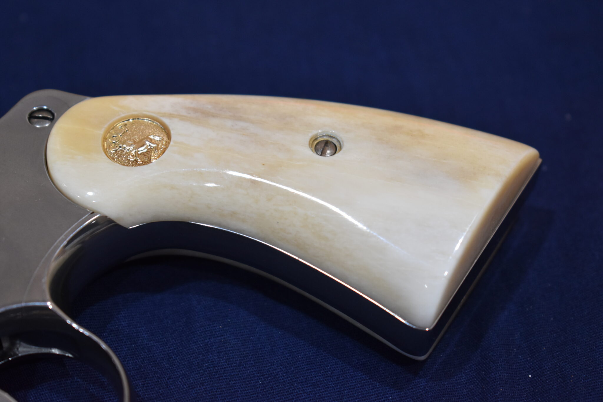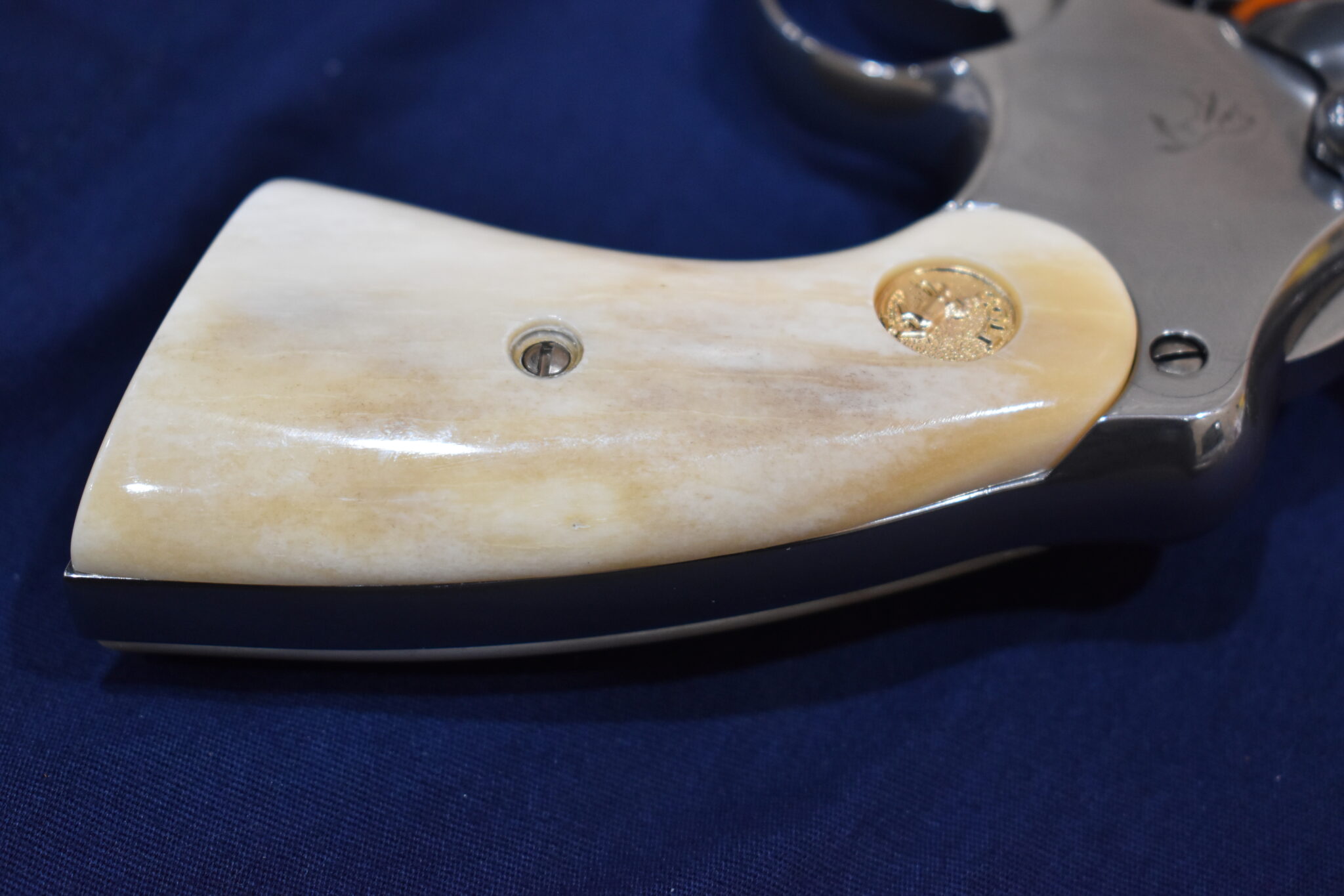THIS IS A CUSTOM SET OF PREMIUM GRADE GIRAFFE BONE GRIPS MADE TO FIT THE COLT PYTHON & OTHER I FRAME REVOLVERS SUCH AS THE OFFICER’S MODEL MATCH AND OFFICIAL POLICE. THEY ARE GENUINE GIRAFFE BONE NOT IMITATION. THEY HAVE A CREAMY WHITE COLOR WITH STREAKS OF BROWN. THEY GIVE YOU THE LOOK OF BARK IVORY AT 1/2 THE PRICE!!!!. THIS SET HAS GOLD COLT MEDALLIONS INSTALLED. THEY ARE SHOWN MOUNTED ON ONE OF THE NEW 4″ STAINLESS PYTHONS. TAKE A CLOSE LOOK AT THE PICTURES AS THEY DESCRIBE THE GRIPS BETTER THAN WORDS.Â