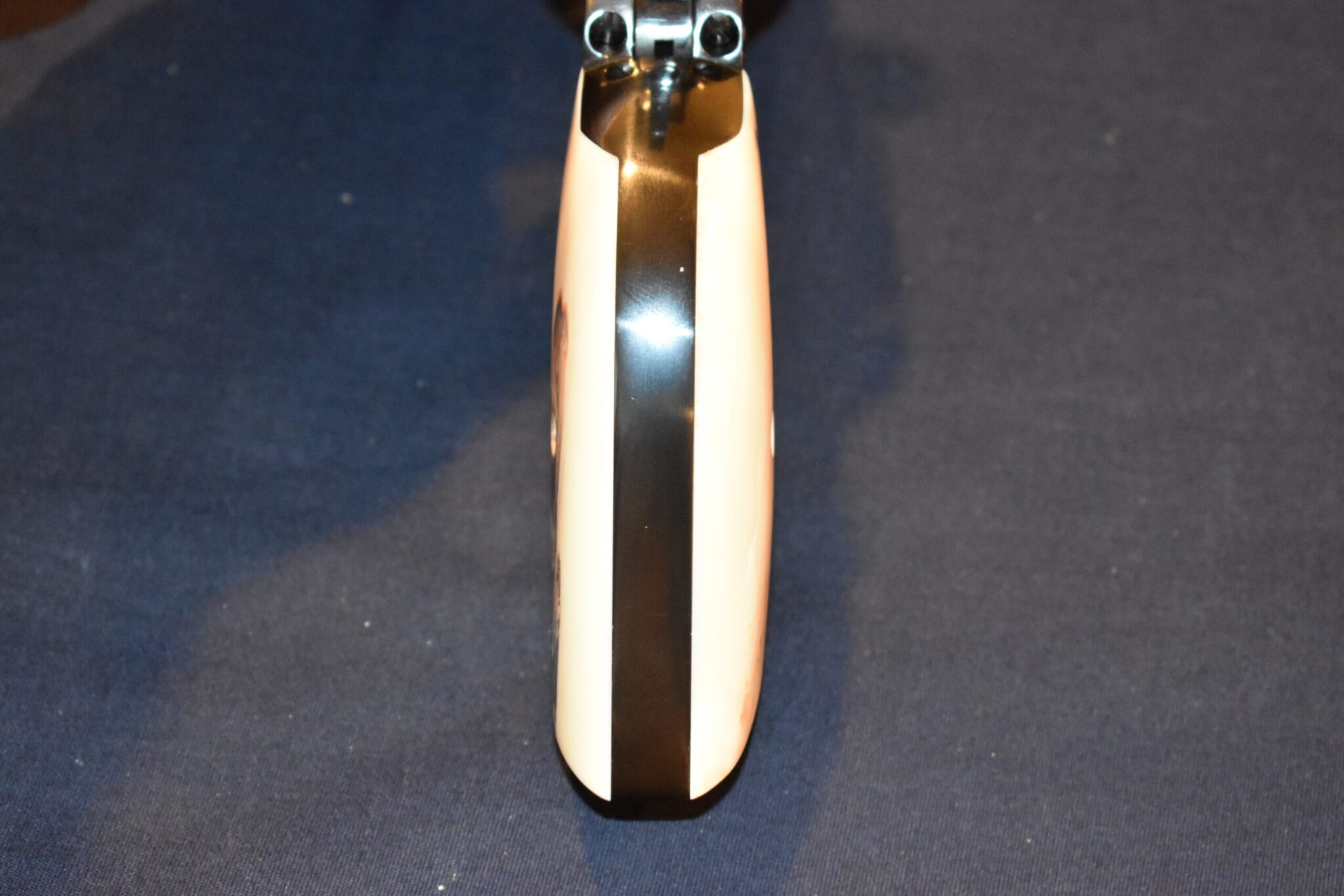 HERE IS A CUSTOM SET OF PREMIUM GRADE FOSSILIZED WALRUS IVORY GRIPS THAT FIT THE THE COLT 2nd or 3rd GENERATION SINGLE ACTION ARMY. THESE ARE REAL FOSSILIZE WALRUS IVORY NOT IMITATION. THIS SET HAS A CREAMY YELLOW COLOR WITH SOME BEAUTIFUL OVERLAY COLORS. THEY ARE SHOWN MOUNTED ON A 4 3/4″ COLT S.A.A.. Â AS WITH ALL NATURAL MATERIAL THERE MAY BE SOME SLIGHT FITTING REQUIRED. TAKE A CLOSE LOOK AT THE PICTURES AS THEY DESCRIBE THE GRIPS BETTER THAN WORDS. SHIPPING WILL BE $8.50 PRIORITY MAIL.