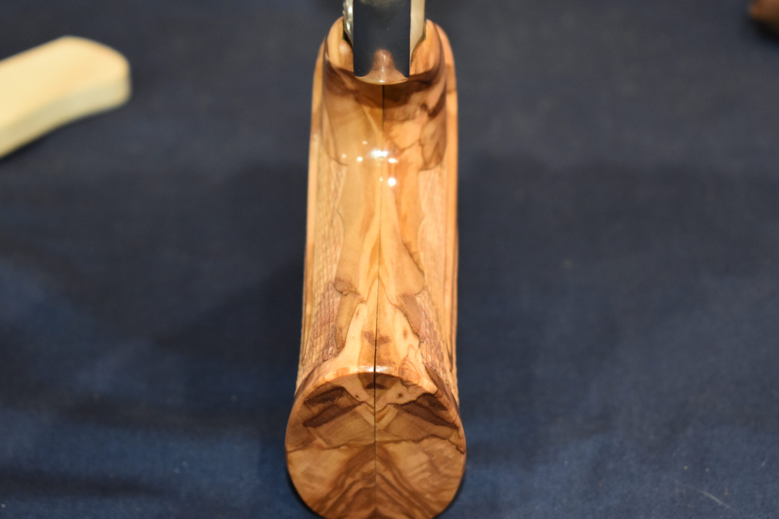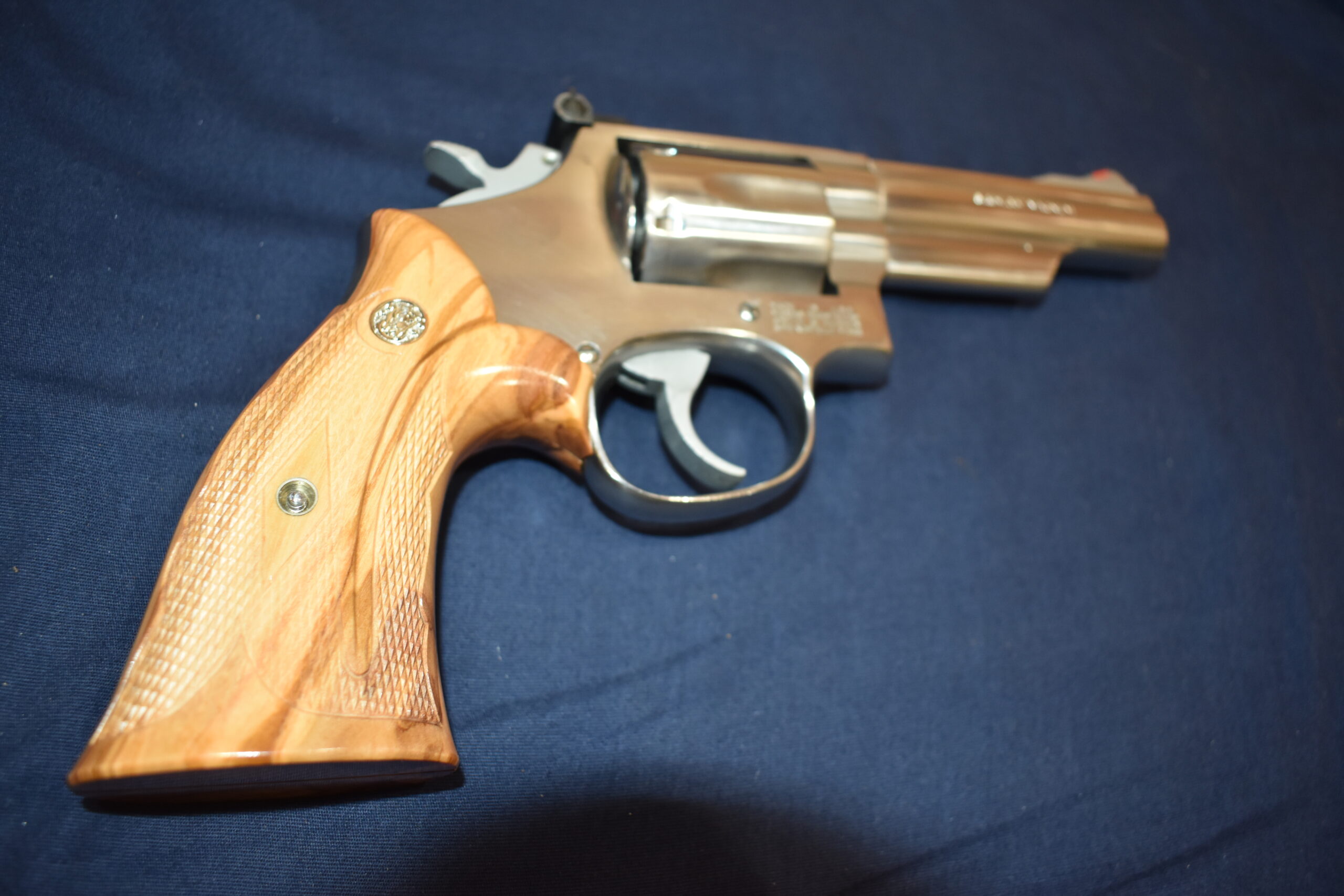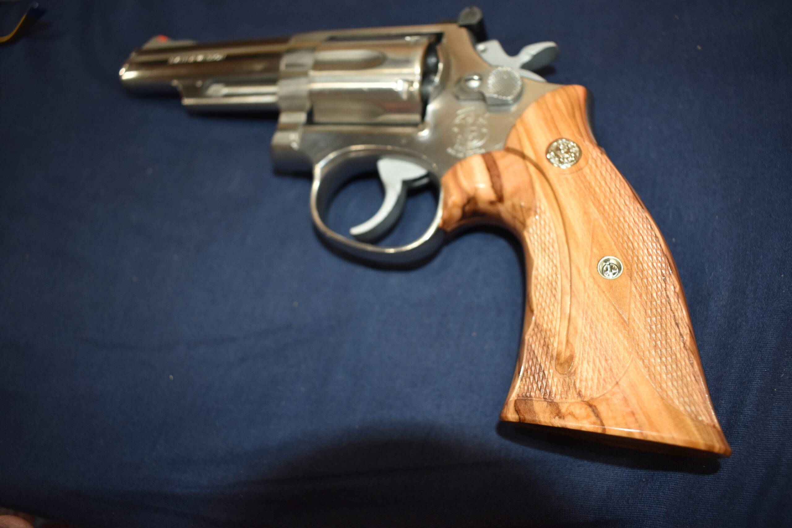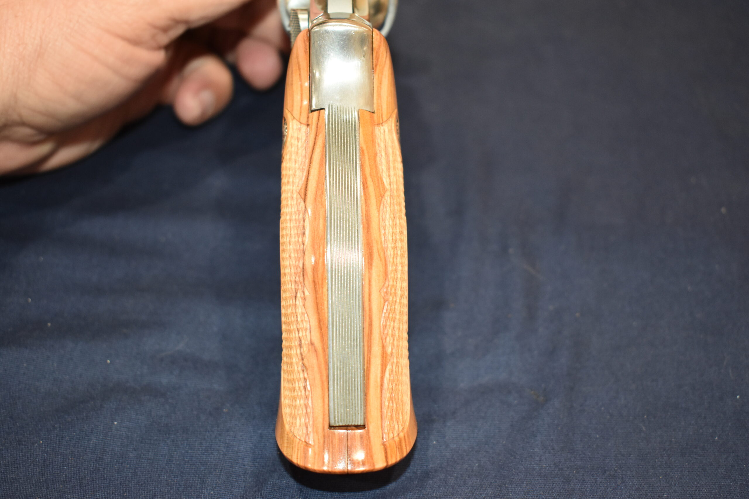THIS IS A CUSTOM SET OF GRIPS MADE BY FAMOUS GRIP MAKER KEITH BROWN. THIS SET IS MADE FROM OLIVE WOOD. THEY HAVE A VERY UNIQUE PATTERN. THESE ARE MADE TO FIT THE SMITH & WESSON K FRAME SQUARE BUTT REVOLVERS. THEY WILL NOT FIT THE ROUND BUTT REVOLVERS. THIS SET HAS KEITH’S EXPEDITION GRADE FINISH. I AM FORTUNATE ENOUGH TO OWN SEVERAL SETS OF KEITH’S GRIPS AND EACH SET IS EXQUISITE. THE THE DETAIL AND CRAFTSMANSHIP THAT GOES INTO EACH SET ALWAYS AMAZES ME. THEY ARE SHOWN MOUNTED ON A MODEL 66. TAKE A CLOSE LOOK AT THE PICTURES AS THEY DESCRIBE THE GRIPS BETTER THAN WORDS. THE FLASH MAKES THE GRIPS LOOK A LITTLE LIGHTER THAN WHAT THEY ACTUALLY ARE.