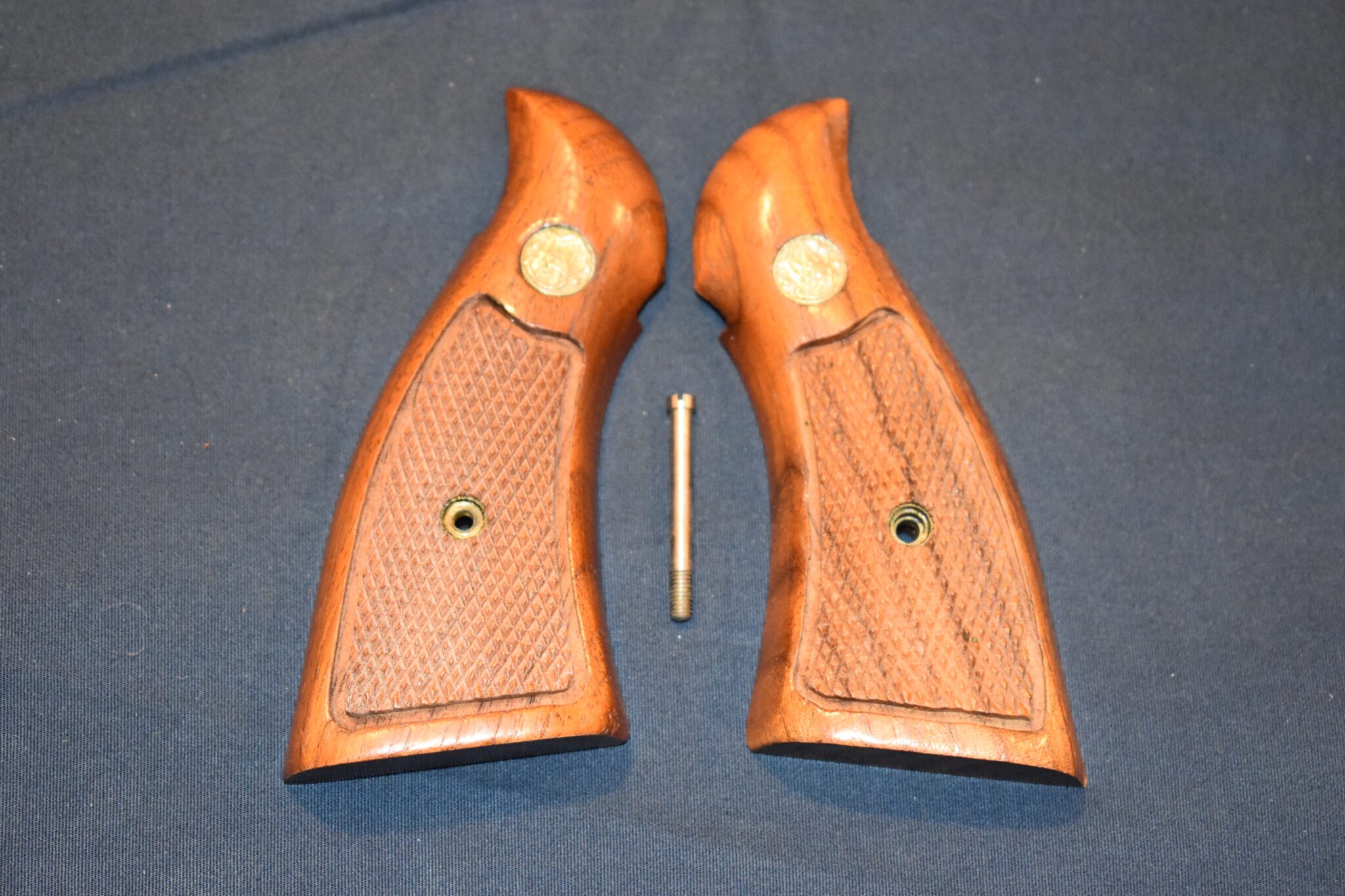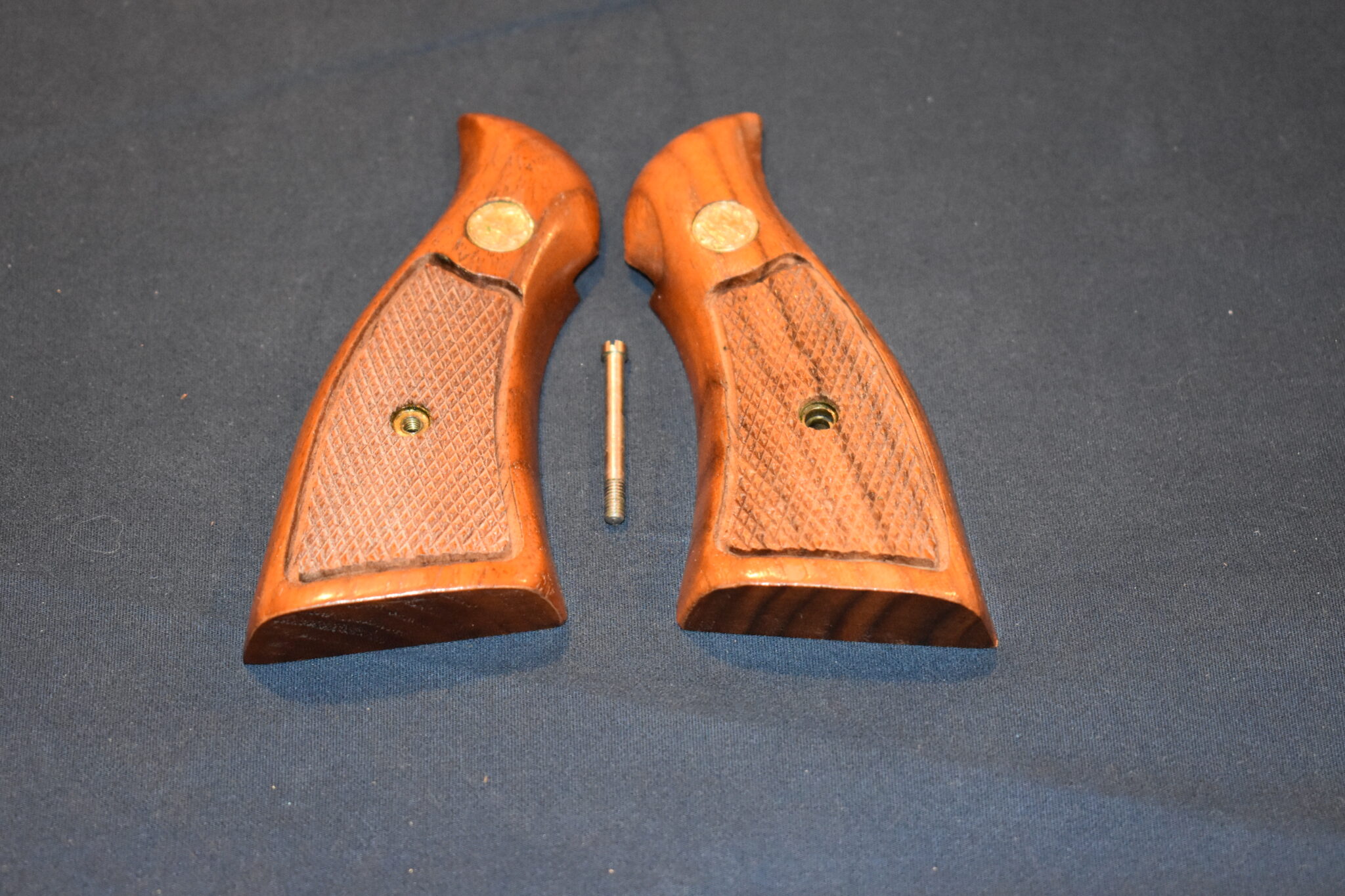 THIS IS A FACTORY SET OF MAGNA GRIPS THAT FIT THE SMITH & WESSON K FRAME SQAURE BUTT REVOLVERS. THESE HAVE THE BLACK Â WASHERS. I WOULD GUESS THEM TO BE FROM THE Â LATE 60’s TO EARLY 70’s. Â THEY ARE IN VERY GOOD CONDITION AND ARE SHOWN MOUNTED ON A 4″ MODEL 66. Â TAKE A CLOSE LOOK AT THE PICTURES AS THEY DESCRIBE THE GRIPS BETTER THAN WORDS.