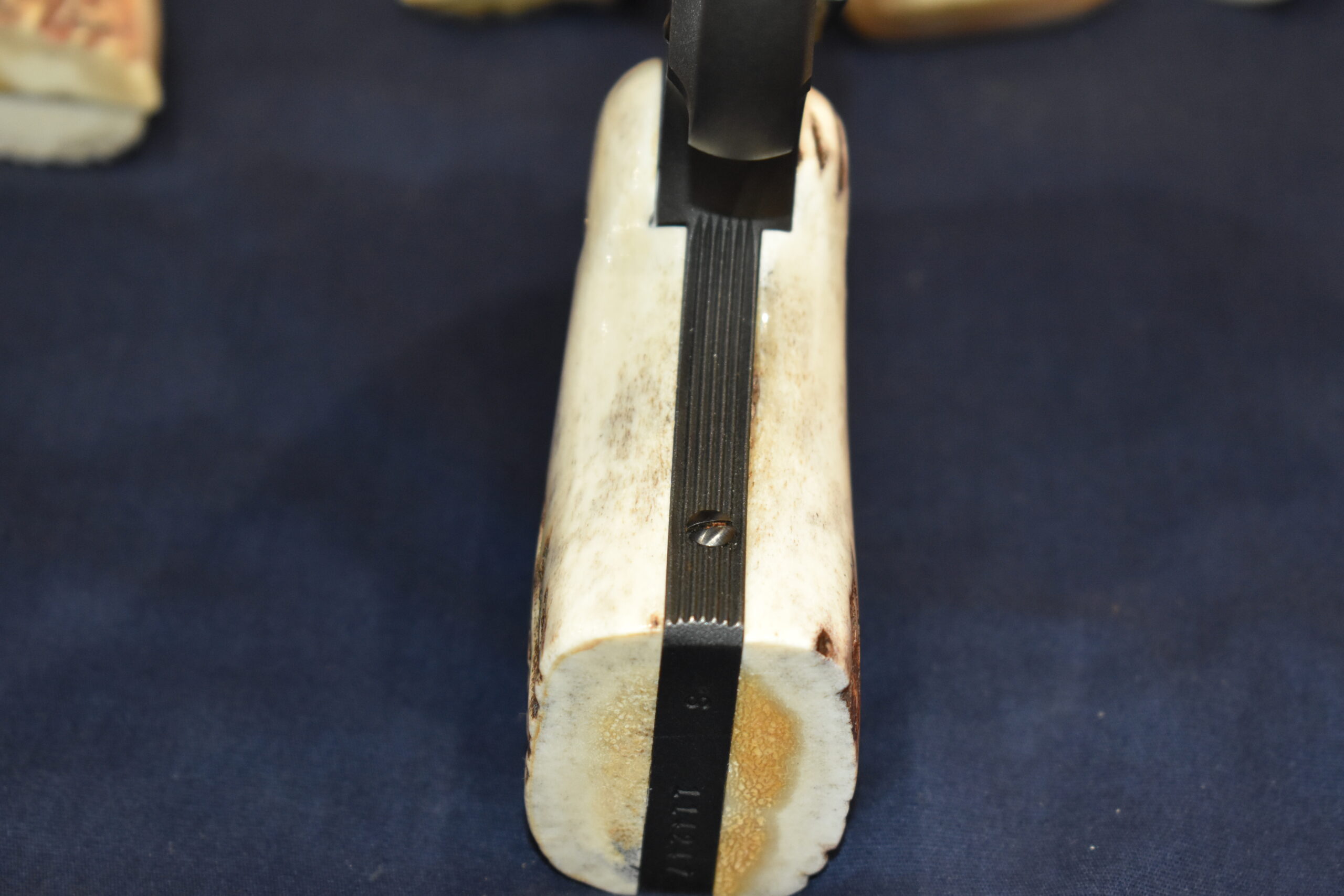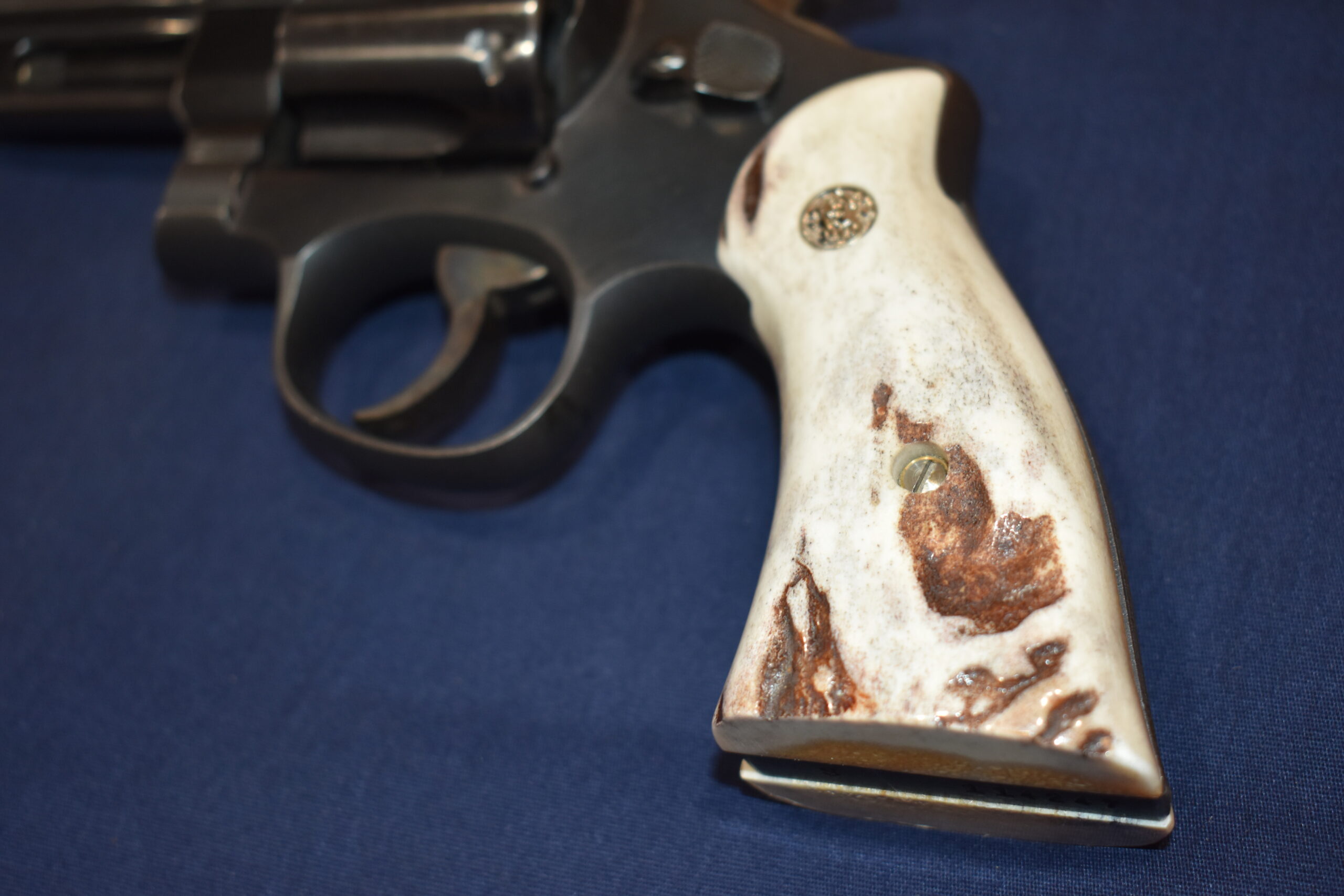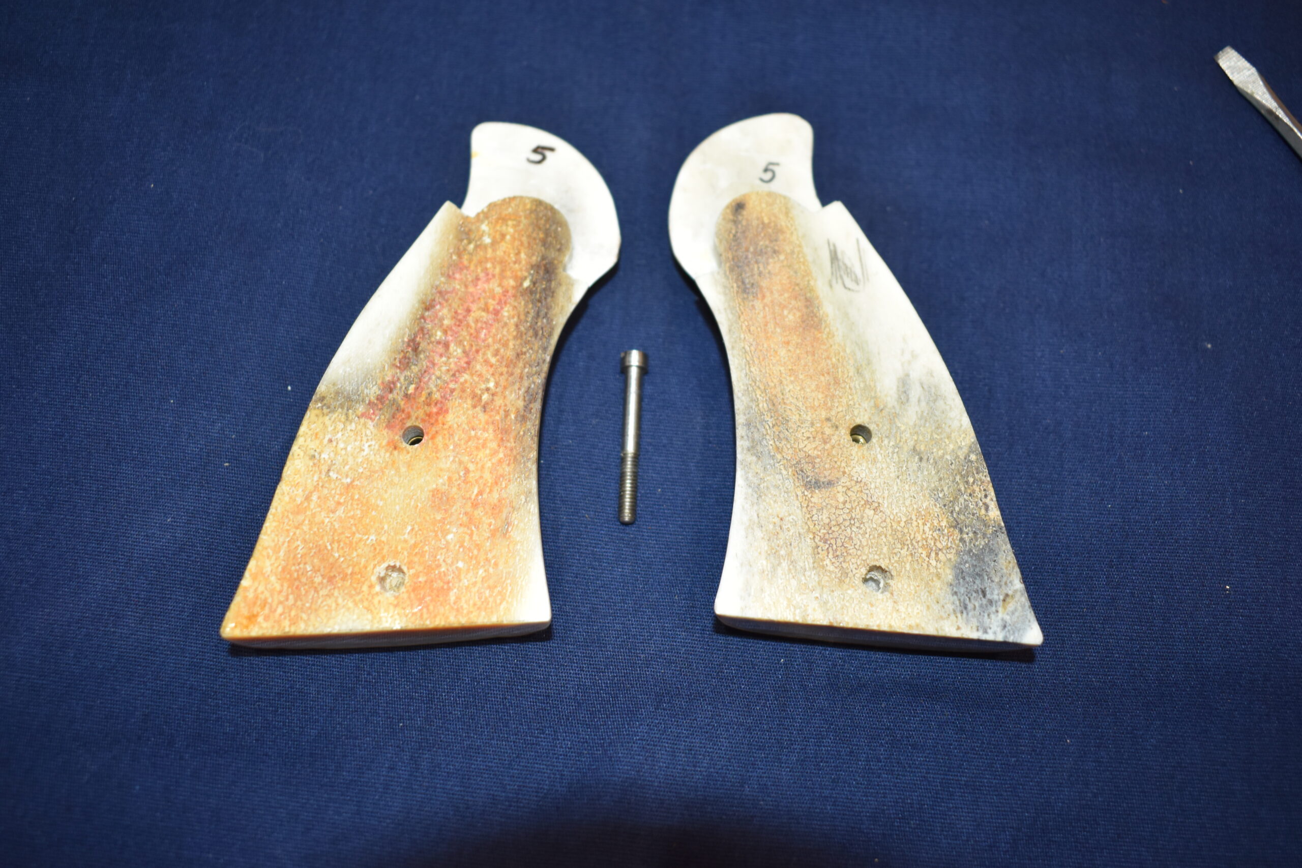 THIS IS A CUSTOM SET OF PREMIUM GRADE SAMBAR STAG GRIPS THAT FIT THE SMITH & WESSON N FRAME SQUARE BUTT REVOLVERS. THESE WILL NOT FIT THE ROUND BUTT REVOLVERS. THESE ARE GENUINE SAMBAR STAG NOT IMITATION. THEY HAVE S&W MEDALLIONS INSTALLED AND SOME REALLY NICE BARK COVERAGE. THEY ARE SHOWN MOUNTED ON A 4″ PRE MODEL 28. THEY ARE A LITTLE OVERSIZED AND WILL REQUIRE SOME SLIGHT FITTING. TAKE A CLOSE LOOK AT THE PICTURES AS THEYÂ DESCRIBEÂ THE GRIPS BETTER THAN WORDS.