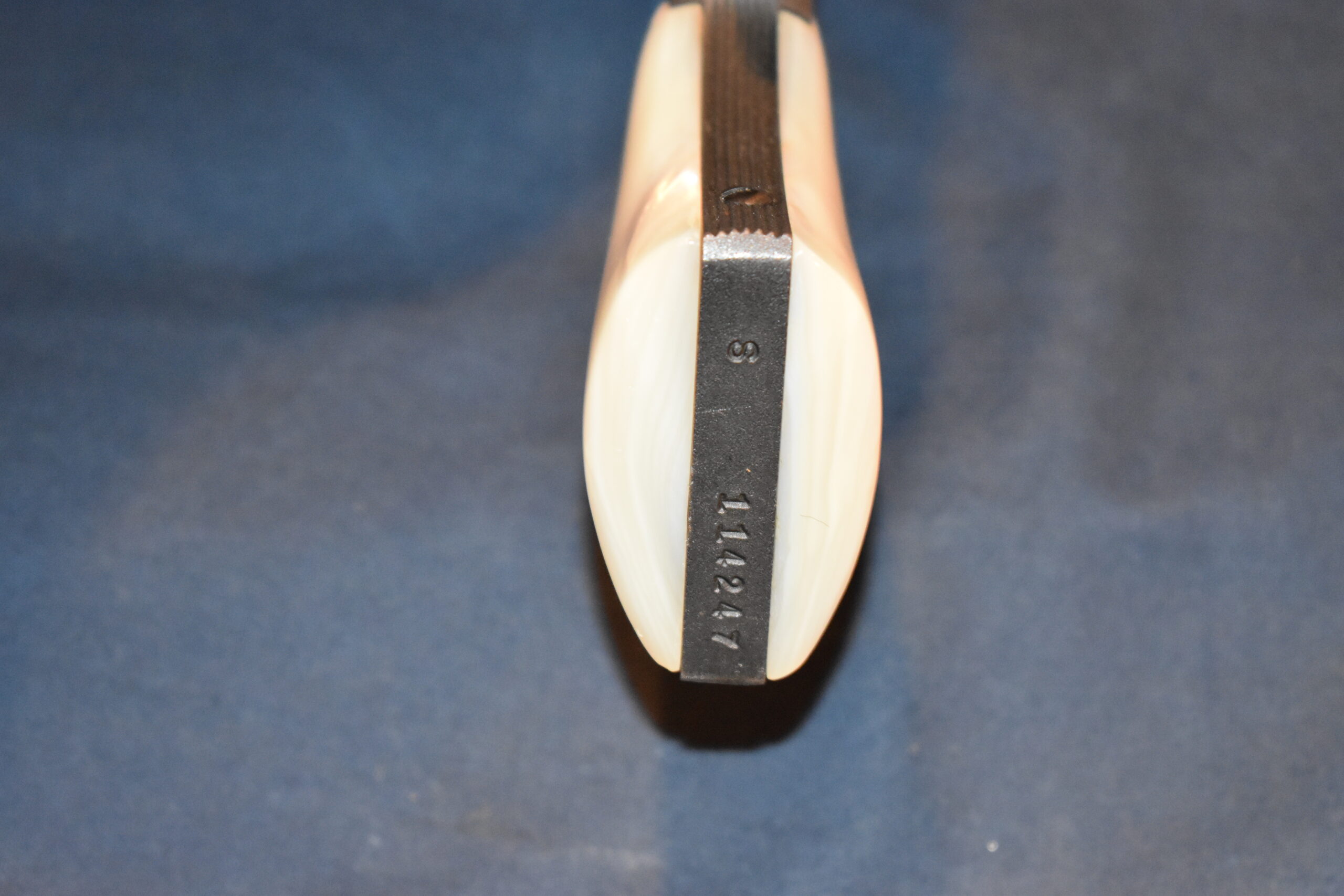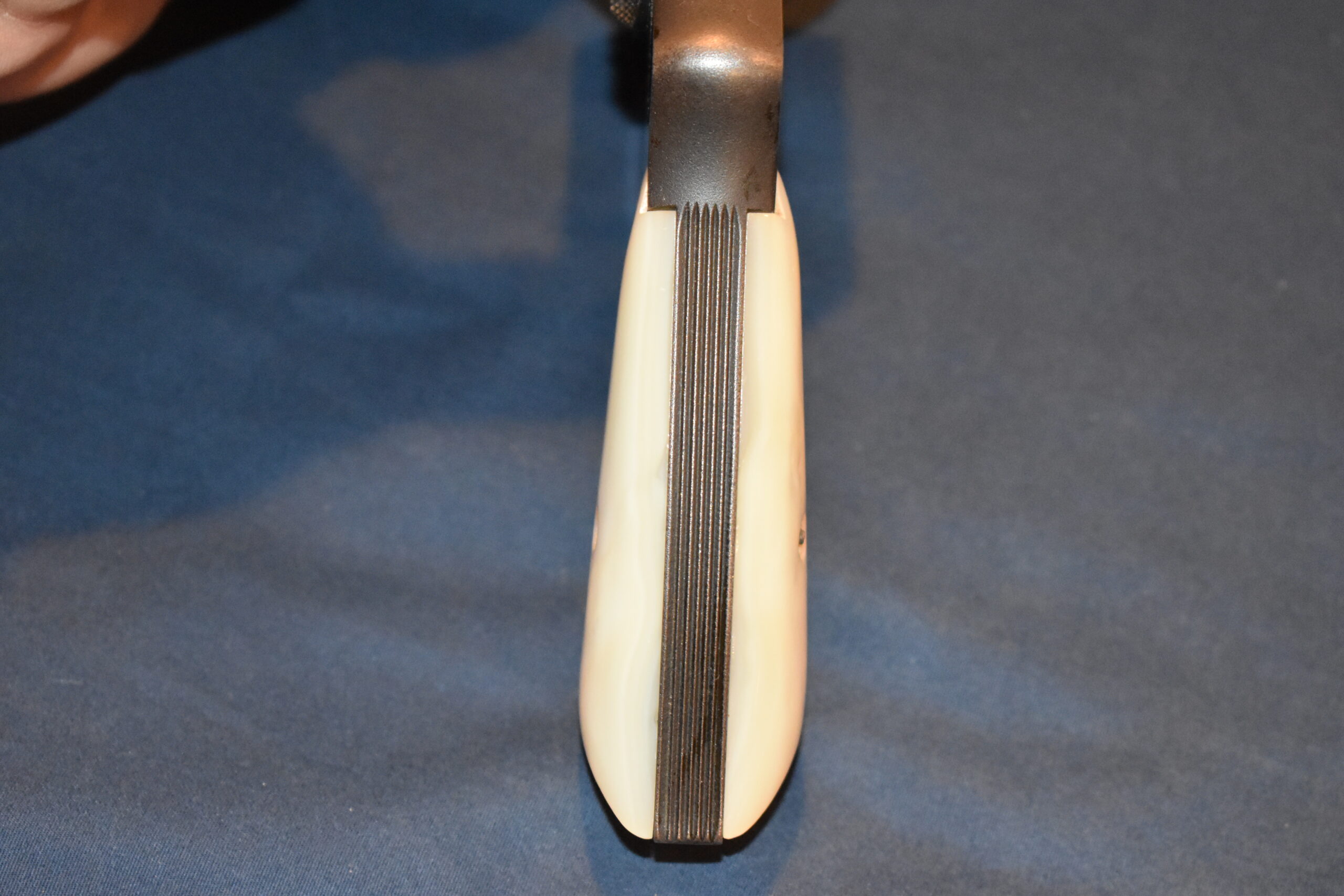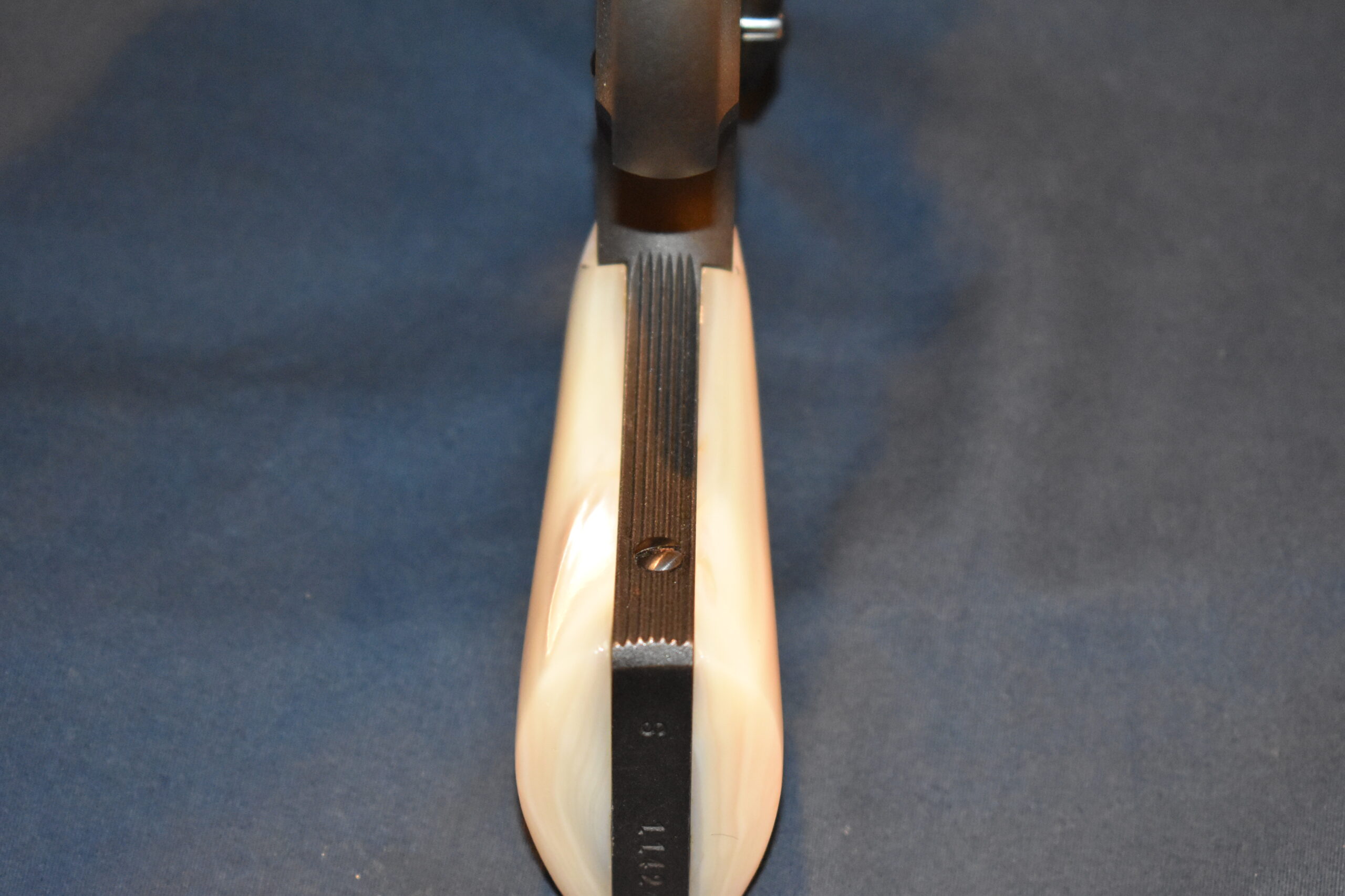 THIS IS A CUSTOM SET  MOTHER OF PEARL GRIPS MADE TO FIT THE SMITH & WESSON N FRAME SQUARE BUTT PRE-WAR REVOLVERS. THESE WILL NOT FIT THE ROUND BUTT REVOLVERS. THESE ARE GENUINE MOTHER OF PEARL NOT IMITATION. THESE ARE CUT IN THE OLDER SERVICE STYLE THAT FIT UP INTO THE FRAME.  MOTHER OF PEARL HAS LONG BEEN A STATUS SYMBOL AND FINDING A VINTAGE CARVED SET LIKE THESE IS ALMOST IMPOSSIBLE. THEY ARE SHOWN MOUNTED ON A 5 SCREW PRE-MODEL 28.  TAKE A CLOSE LOOK AT THE PICTURES AS THEY DESCRIBE THE GRIPS BETTER THAN WORDS. SHIPPING WILL BE $18.50 PRIORITY MAIL WITH INSURANCE.